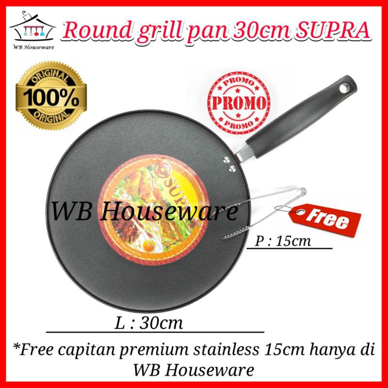 Pusat Grosir Perlengkapan di Kabupaten Sukabumi Wajan Teflon / Wajan Ceper / Wajan Gagang / Supra Round Grill Pan 30cm - Grillpan Bulat Ceper dari Supra Kota Tangerang Selatan