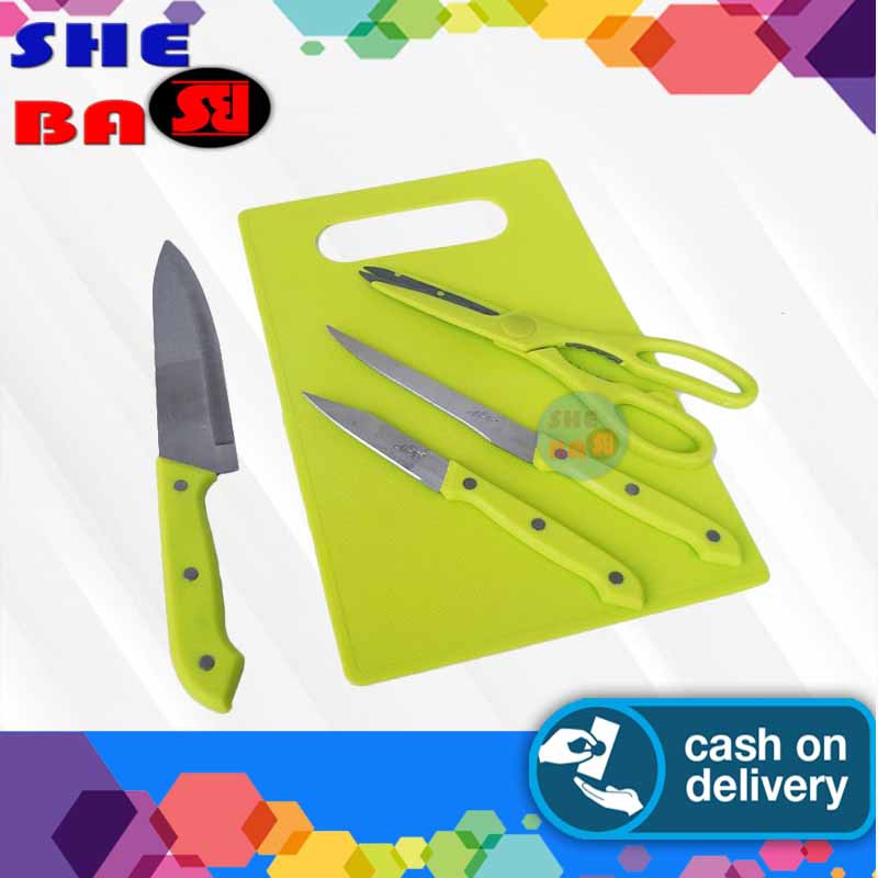 Tersedia Pisau Set bagi Anda yang menginginkan pisau set berkualitas namun terjangkau, dilengkapi dengan gunting dan juga talenan.Knife Set ini terdiri dari 3 pisau dan 1 gunting juga dilengkapi dengan talenan. Dengan 3 pisau yang berbeda ukuran sesuai fungsinya memudahkan Anda dalam memotong berbagai daging, buah, sayur, roti dan juga bumbu dapur.Pisau terbuat dari bahan stainless steel sehingga aman untuk bahan makanan dan lebih tajam. Talenan terbuat dari bahan plastik ABS yang berkualitas dan tidak licin.Untuk menjaga pisau tetap tajam dan lebih lama digunakan, sehabis memotong bahan makanan disarankan membersihkan menggunakan air panas dan kain lap.1 Set Pisau dapur berisi- 1 buah pisau besar untuk memotong daging- 1 buah pisau sedang untuk memotong sayur- 1 buah pisau roti- 1 buah gunting- 1 buah ta