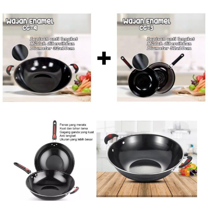 Detail Produk & SpesifikasiDiameter 32cmcmLapisan luar enamel porcelainAntigores dan antilengketTahan panas hingga 450°CCocok untuk menggoreng maupun browningMudah dibersihkanMemasak lebih cepat dan hemat bahan bakarDapat digunakan untuk semua tipe komporProses pembuatannya dengan risiko kerusakan lingkungan yang lebih kecil dan emisi CO2 yang lebih rendahWajan Enamel ini merupakan peralatan masak berkualitas . Hadir dengan desain modern yang dapat membuat aktivitas memasak terasa mudah. Wajan ini terbuat dari bahan berkualitas dengan lapisan enamel porcelain yang mampu membuat panas cepat merata. Selain itu, lapisan keramik coating pada peralatan ini membuatnya antilengket, antigores, dan mampu memasak lebih cepat sehingga menghemat bahan bakar.Kelebihan peralatan rumah tangga berbahan dasar enamel:- Perlu kamu ketahui bahwa perabotan rumah tangga berbahan dasar enamel lebih tahan lama dan lebih kuat. Sehingga kamu tak perlu sering-sering membeli penggorengan baru tentunya.- Selain itu perabotan berbahan dasar enamel juga sangat mudah dibersihkan. Sesaat setelah kamu memasak semur, sop ataupun gorengan, kamu hanya perlu mengelapnya dengan spon ataupun busa, praktis dan simpel kan!- Anti gores.- Peralatan berbahan dasar enamel juga bisa dianggap sebagai barang mewah karena presentasinya yang elegan. Selain itu karena tahan lama dan juga terlihat mewah, - Peralatan berbahan dasar enamel juga non toxic alias tidak beracun sama sekali sehingga sangat aman untuk berbagai keperluan didalam r