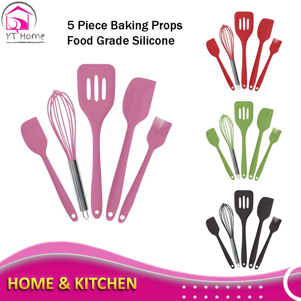Silicone Utensil Set / Spatula Sutil Silikon / Peralatan Masak Kitchen Tools Silikon Silicon5 Piece Baking Props silicon kitchen toolsSet Alat Masak Silicone (Isi 5 pcs) / Spatula Silikon Food GradeSET ALAT MASAK SILICONE TAHAN PANAS ISI 5 PCS( * KONDISI TAHAN PANAS BAHAN SILICON/KARET, tidak di-recomended/ di-sarankan di tinggal di panci / wadah pada saat kompor api menyala untuk rentang waktu tertentu )1 Set isi 5 pcs :● 1 x Scraper Kecil: +/- 21.7 x 3.9 cm● 1 x Scraper Besar: +/- 25.6 x 4.2 cm● 1 x Pengocok: +/- 25.9 x 5.2 cm● 1 x Spatula: +/- 29.2 x 6.5 cm● 1 x Kuas: +/- 20.8 x 3.5 cmTersedia 4 warna :1. Pink2. Merah3. Hijau4. Hitam● Bahan: Food-Grade Silicone● Aman dan tidak beracun● Tahan panas (sesuai deskripsi diatas) , cocok untuk wajan enamel atau teflon● Berat Barang: +/-373 gr● Asal Barang: IMPORTNote : Semua item yang akan dikirim sudah di cek terlebih dahulu sebelum di packing buble wrap dan dus sehingga saat pengiriman dalam keadaan baikjika sisa stok ada defect (cacat) / sold out pasti akan kami kabari kepada pihak customer.Happy Shoppi