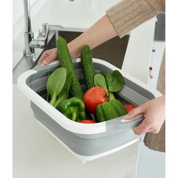 Talenan lipat Baskom Wadah Cucian Sayur flexible chopping board ZD032BARANG SESUAI GAMBAR DAN DESKRIPSI !!!READY : grey ***PRODUK ORIGINAL****Talenan lipat Baskom Wadah Cucian Sayur flexible chopping board ZD032 yang dilengkapi baskom wadah untuk tempat sayuran atau buah.Baskom ini didesain fleksibel agar bisa dilipat, dilengkapi saluran pembuangan air yang bisa dibuka-tutup sesuai kebutuhan. Bisa untuk mencuci sayuran, buah-buahan atau keperluan lainnya. Praktis digunakan di rumah, atau dibawa bepergian saat kamping.Material : Food grade plasticSize : sesuai